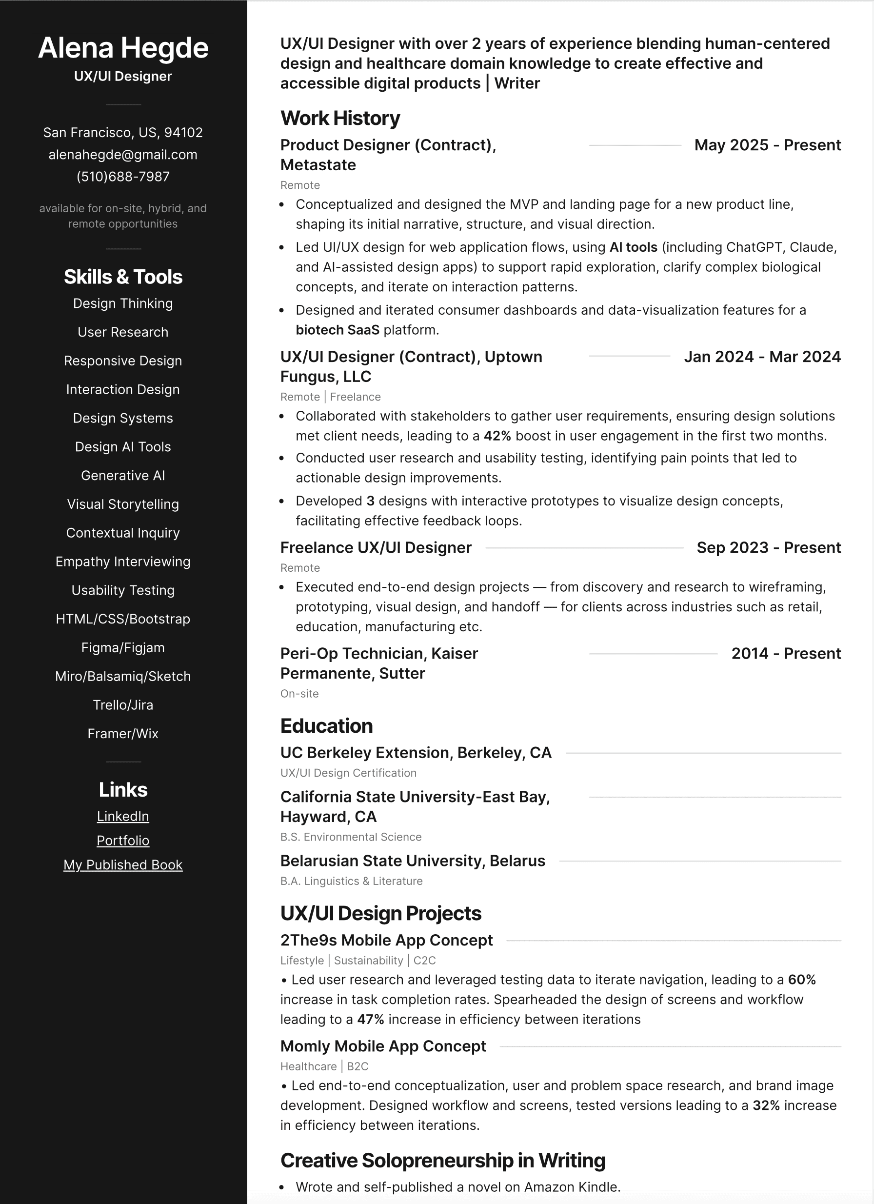 Currently: product design (contract) @ Metastate